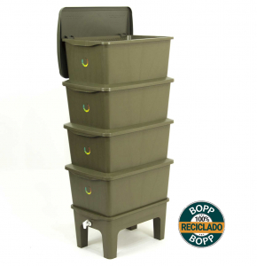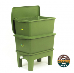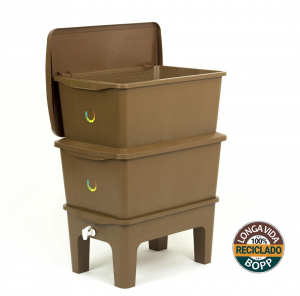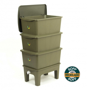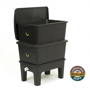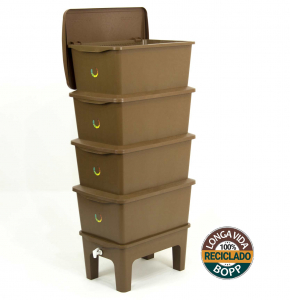 Essa peça armazena o excesso de líquido dos resíduos orgânicos. O Composto Líquido é um adubo concentrado, muito rico em nutrientes. Ele deve ser diluído antes de ser usado na rega das plantas.