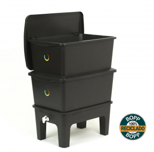 Quando a caixa de cima estiver cheia, as caixas são trocadas. Enquanto os novos resíduos são colocados na caixa de cima, as minhocas transformam os resíduos dessa caixa em húmus.